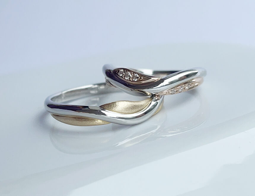 結婚指輪の片方を切断したので、サイズ直しと仕上げ直しをして表面の傷をきれいに磨きました。ペアの指輪もお預かりをして一緒にお磨きし、お客様のお手元へお返ししました。