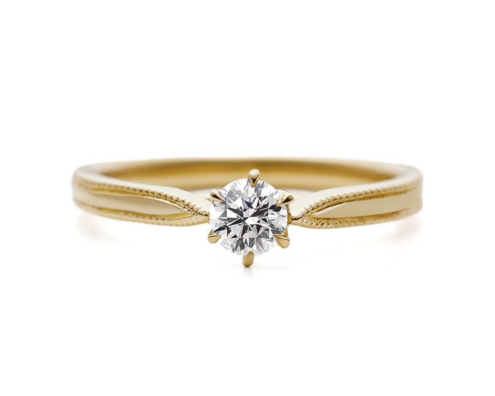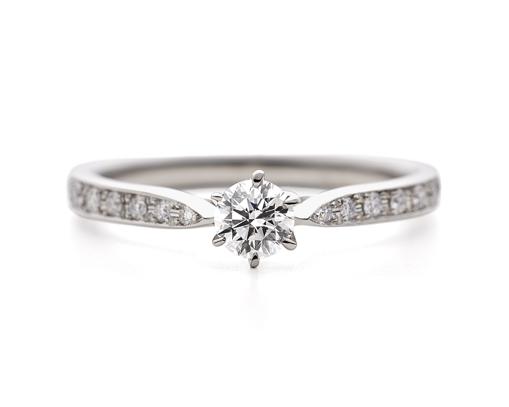 また、様々なテイストのストレートラインのマリッジリングと綺麗に重なる事を重視し、センターダイヤモンドのセッティングの高さや厚みにこだわっている為、マリッジリングを選ぶ時の自由性も高いです。