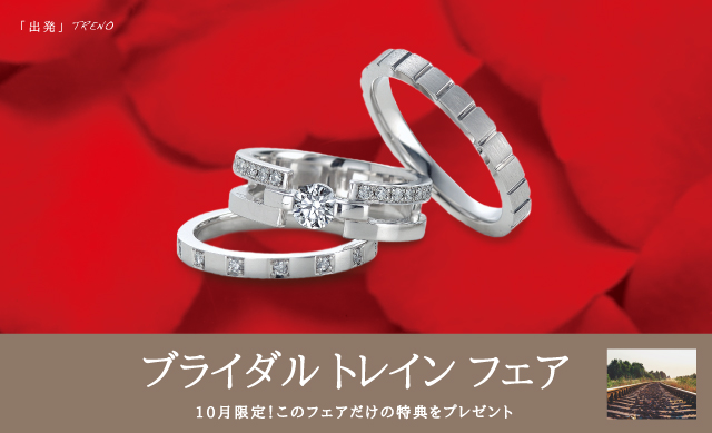 ブライダルトレインフェアを開催 フェア期間中、ご成約頂いた方には期間限定“ご成約特典”をご用意しています。是非この機会にAFFLUXの指輪をご試着しにご来店下さいませ。 ※直営店とAFFLUX取扱店では、フェア期間と成約特典が異なります。