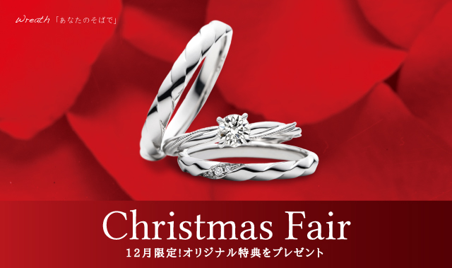 Christmas Fairを開催! Christmas Fair期間中、ご成約頂いた方には期間限定“成約特典”をご用意しています。是非この機会にAFFLUXの指輪をご試着しにご来店下さいませ。 ※直営店とAFFLUX取扱店では、フェア期間と成約特典が異なります。