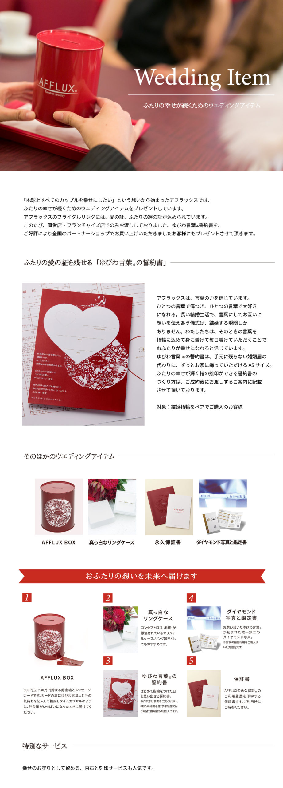 「AFFLUXの永久保証 ®」で、ずっと愛せる結婚指輪