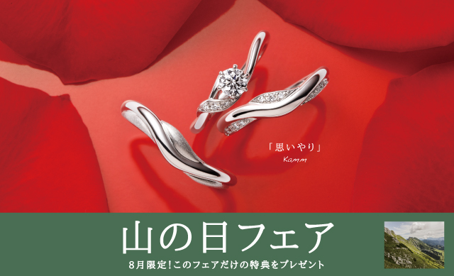 山の日フェア期間中、ご成約頂いた方には期間限定“ご成約特典”をご用意しています。是非この機会にAFFLUXの指輪をご試着しにご来店下さいませ。