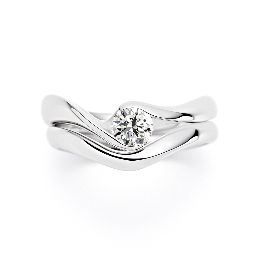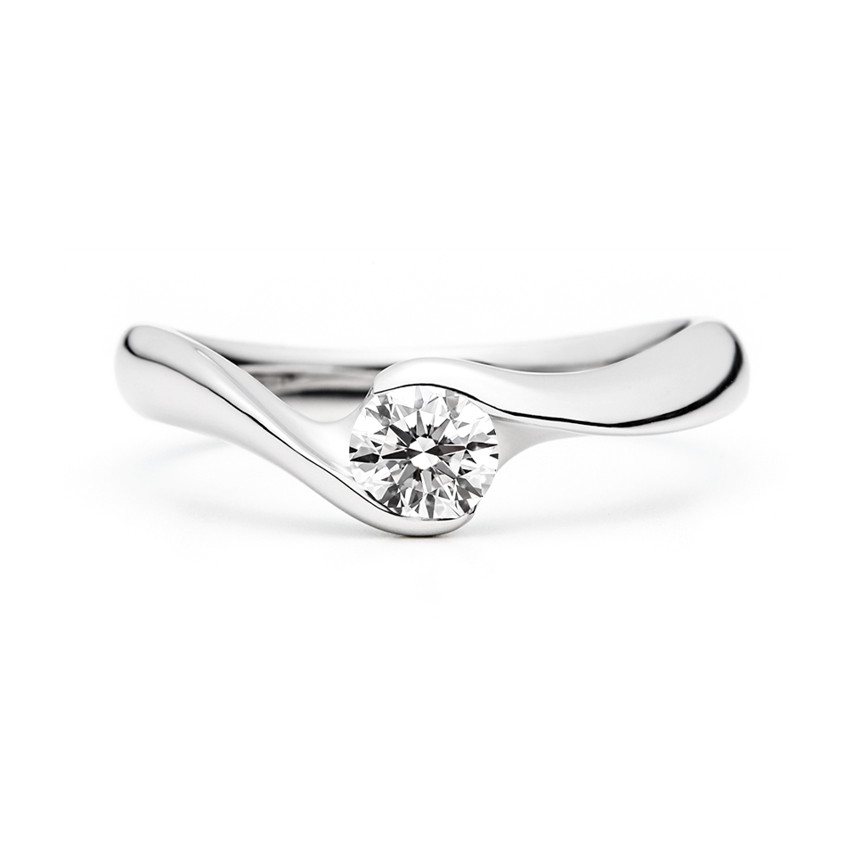 腕の曲線を活かし、ダイヤモンドを抱き込む形の伏せ込み留めで、ウェーブラインの美しさを最大限に引き出しています。