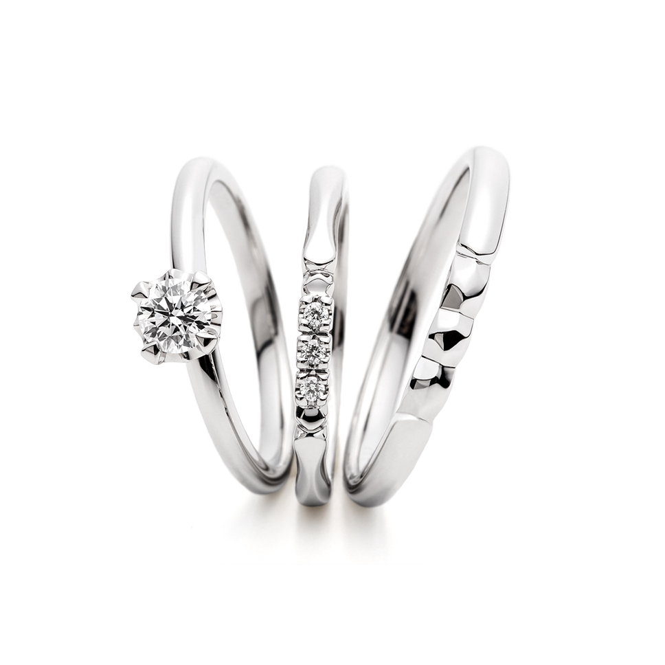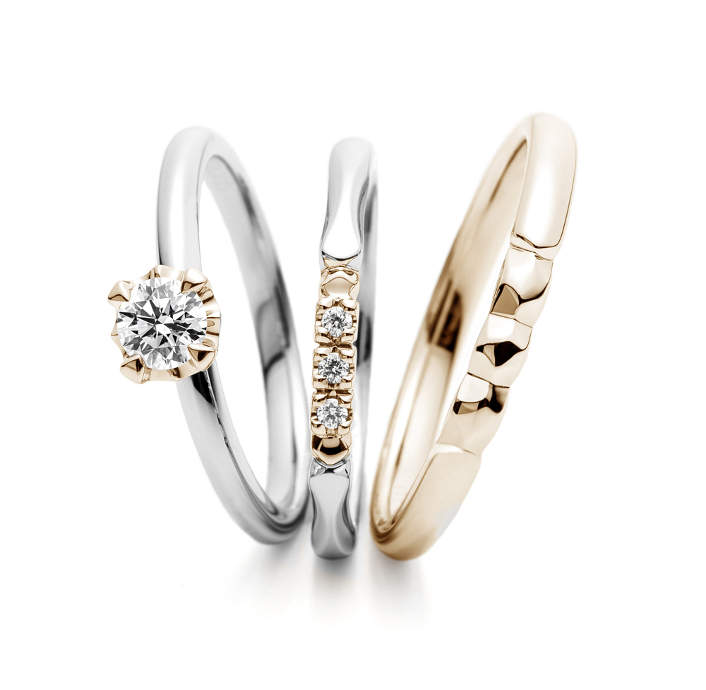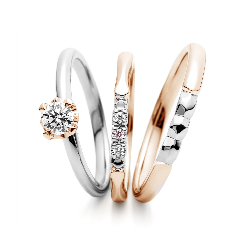 いくつかのデザインで迷いましたが、サイトを見て可愛いなと思ったGardenを実際に着けた瞬間、可愛くて虜になってしまいました!3つ並んだダイヤも横のくびれのデザインもとても気に入っています!