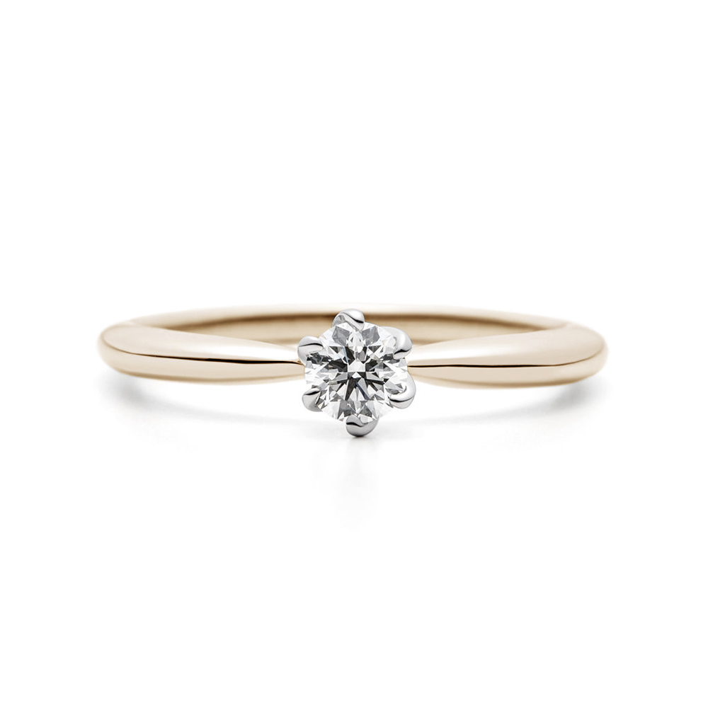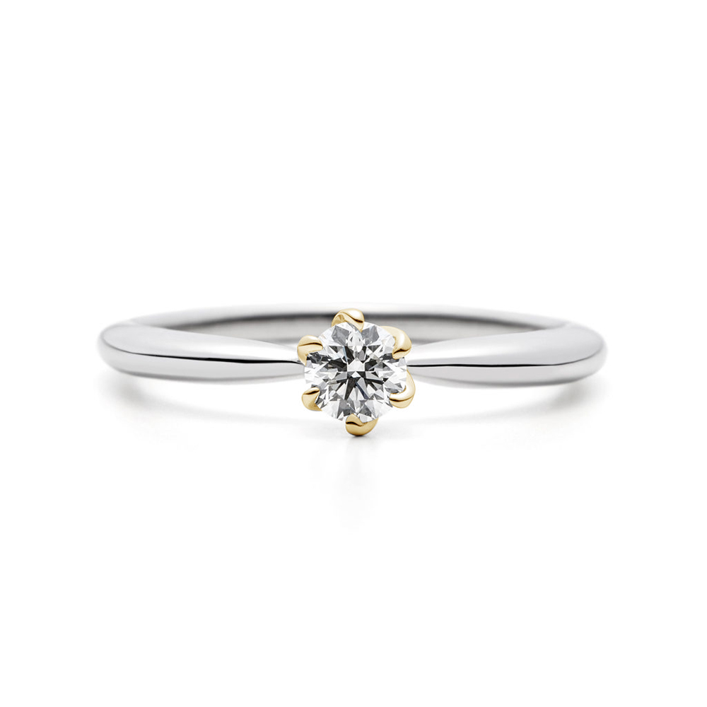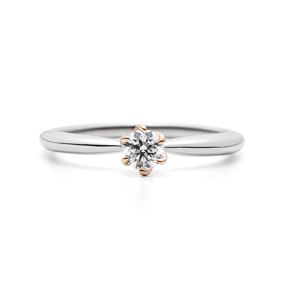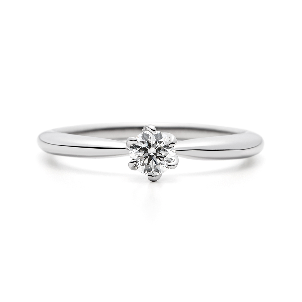 センターダイヤモンドは6本爪です。石枠は雷をモチーフにデザインしており、センターダイヤモンドの周りを旋回する繊細な爪は匠の技が光る仕上がりです。中央に向かって細く絞ることで、ダイヤモンドが指元で映える工夫をしています。