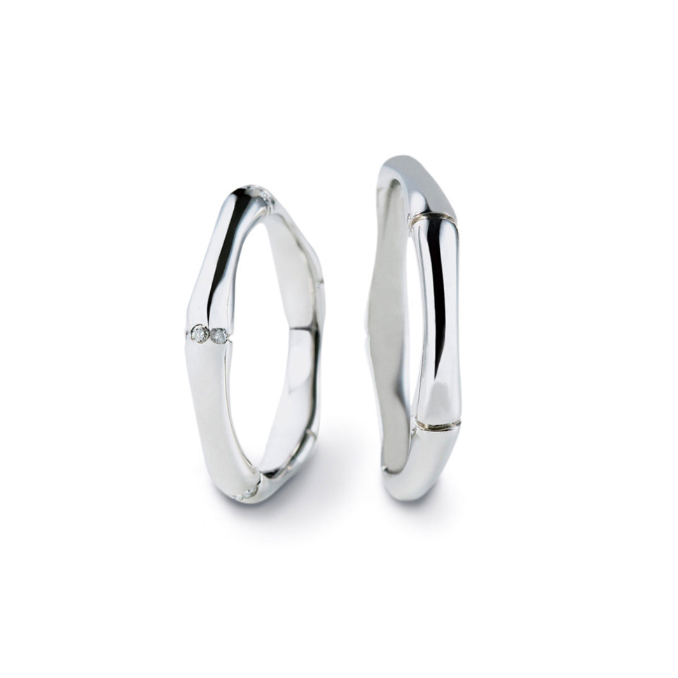 - 指輪を側面から見ると柔らかい五角形を描きます。竹のしなる様なイメージです。