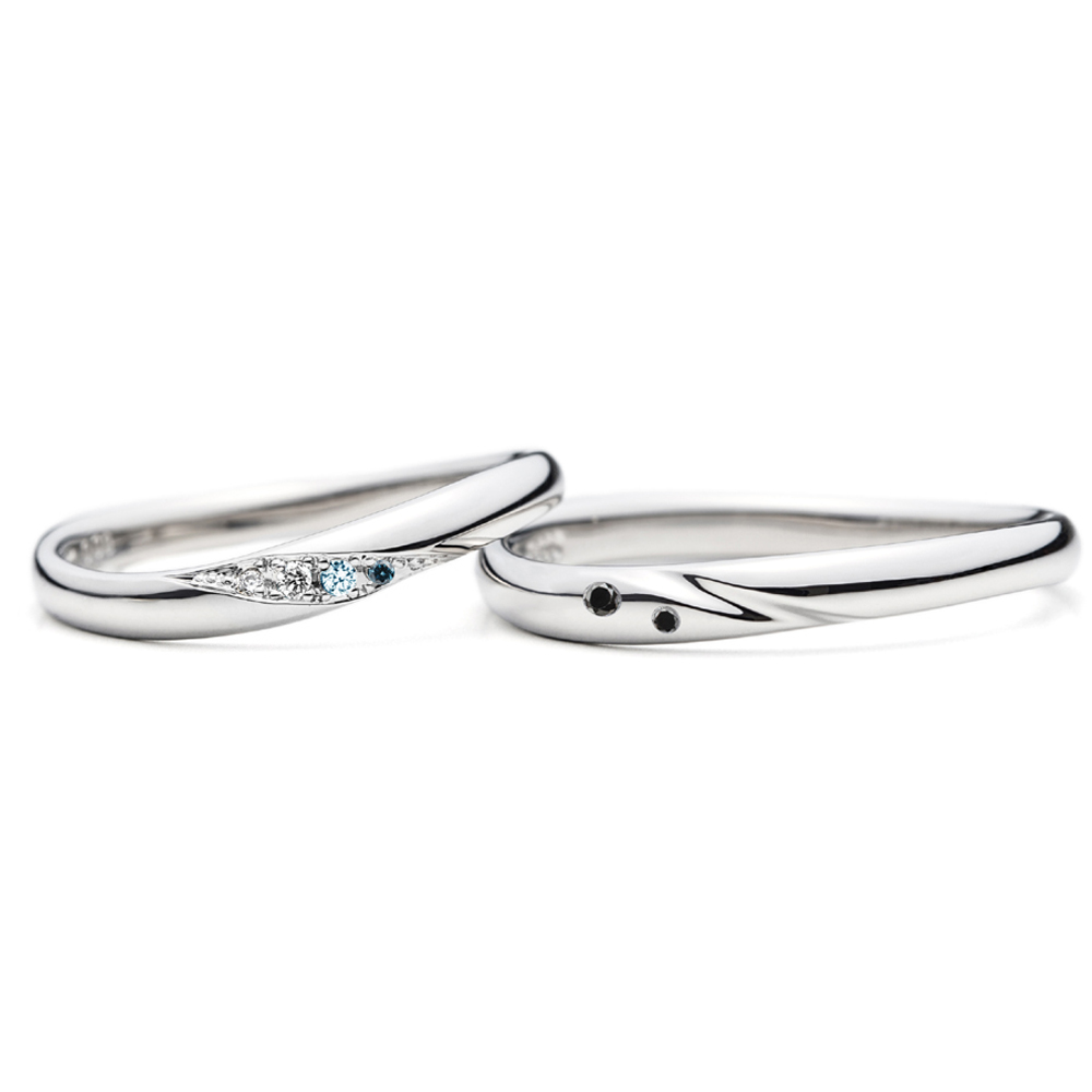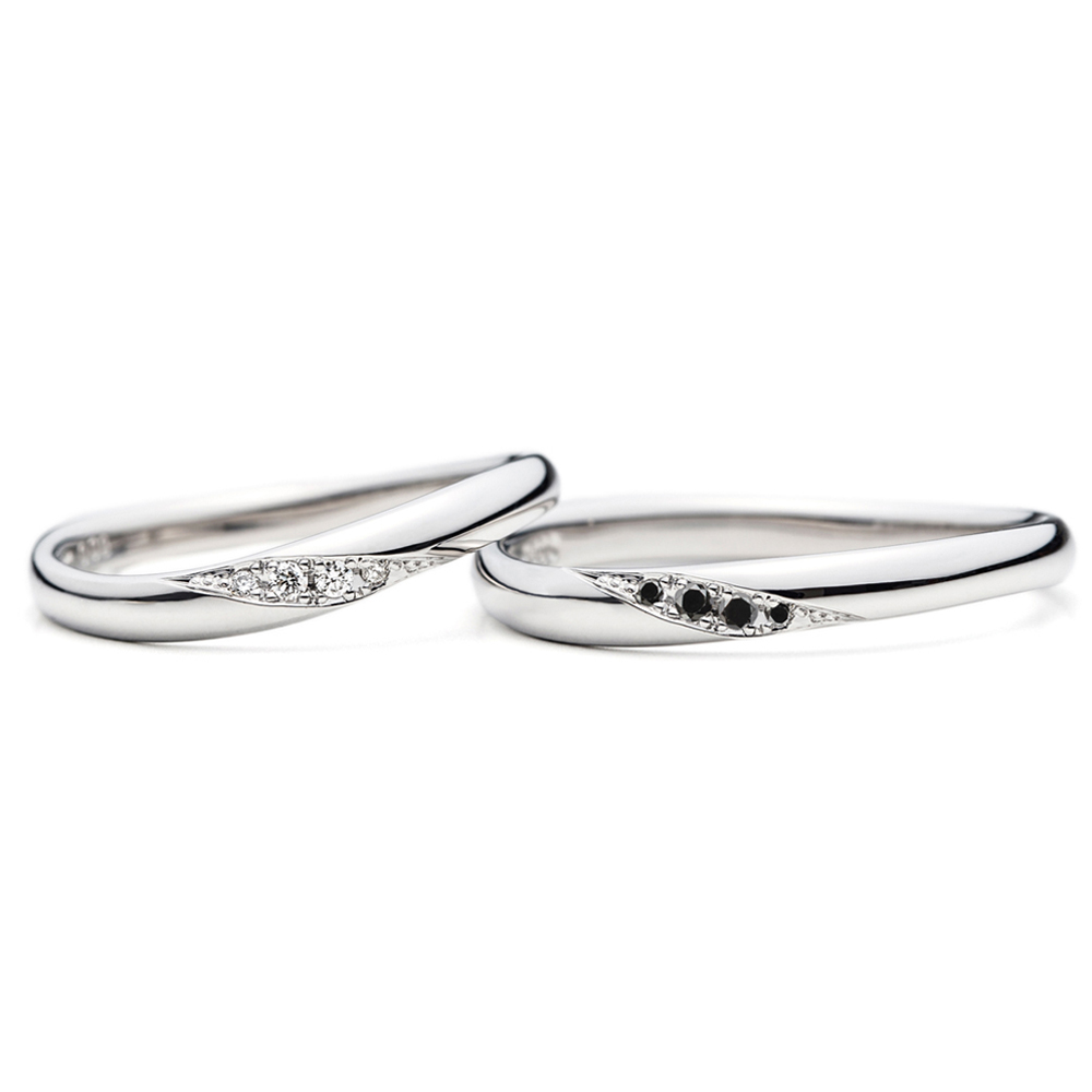 右:結婚指輪(ダイヤあり)と同様のデザインフォルムです。よりシンプルな印象で着けることができます。