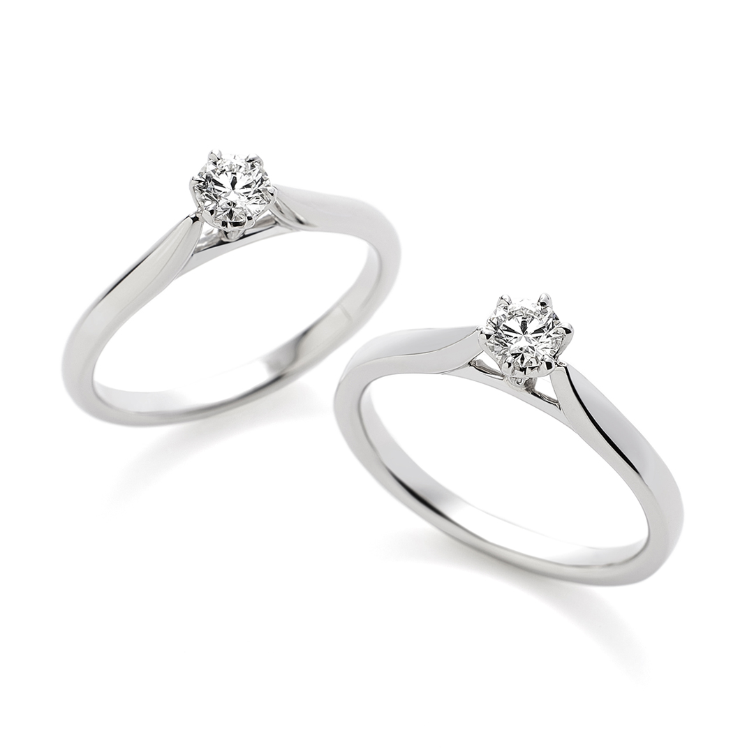 また、様々なテイストのストレートラインのマリッジリングと綺麗に重なる事を重視し、センターダイヤモンドのセッティングの高さや厚みにこだわっている為、マリッジリングを選ぶ時の自由性も高いです。
