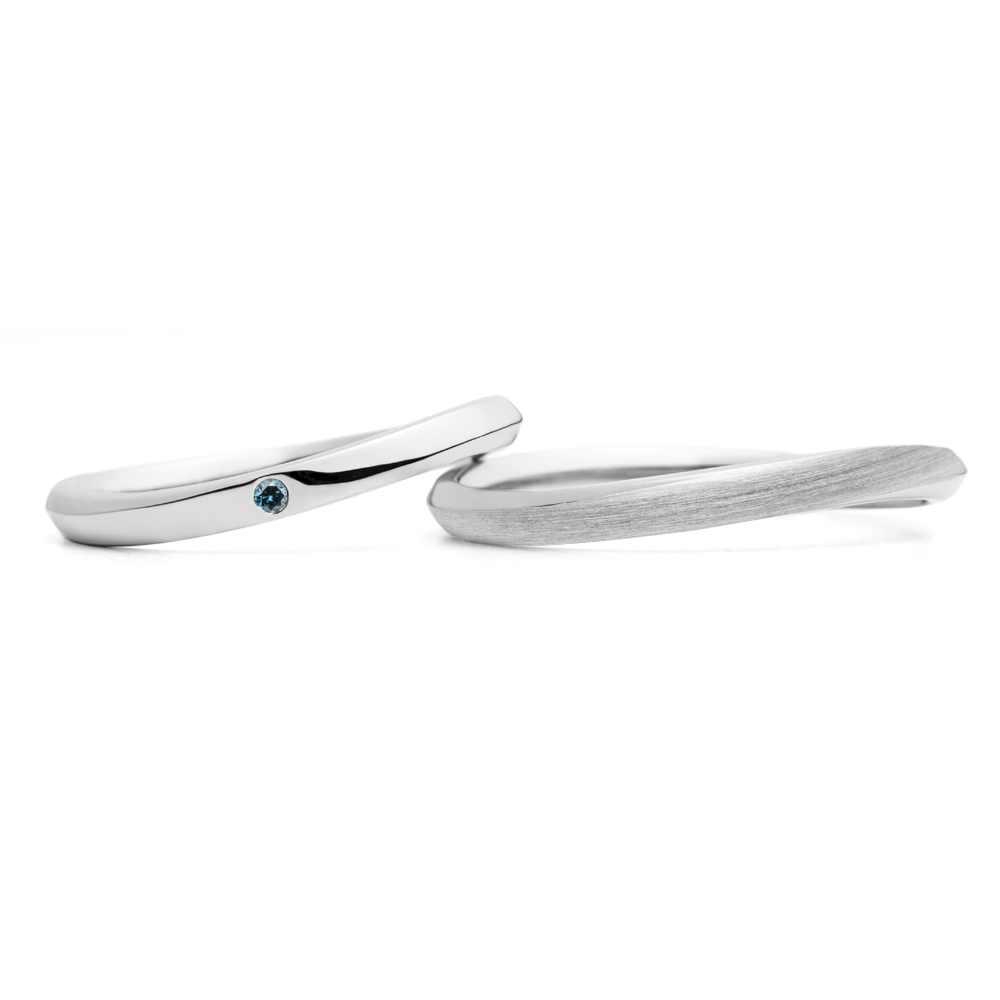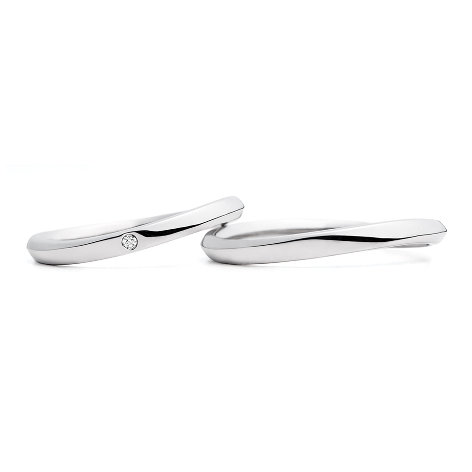 右:結婚指輪(ダイヤあり)と同様のウェーブラインです。 面の切り替えが立体感を与え、独特の光沢が美しいです。シンプルさと個性を兼ね備えています。こちらも指当たりが気にならない様に工夫されています。