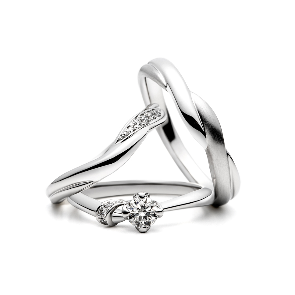マリッジリングの2本のウェーブラインは、ふたりの想いの交わりを表しています。