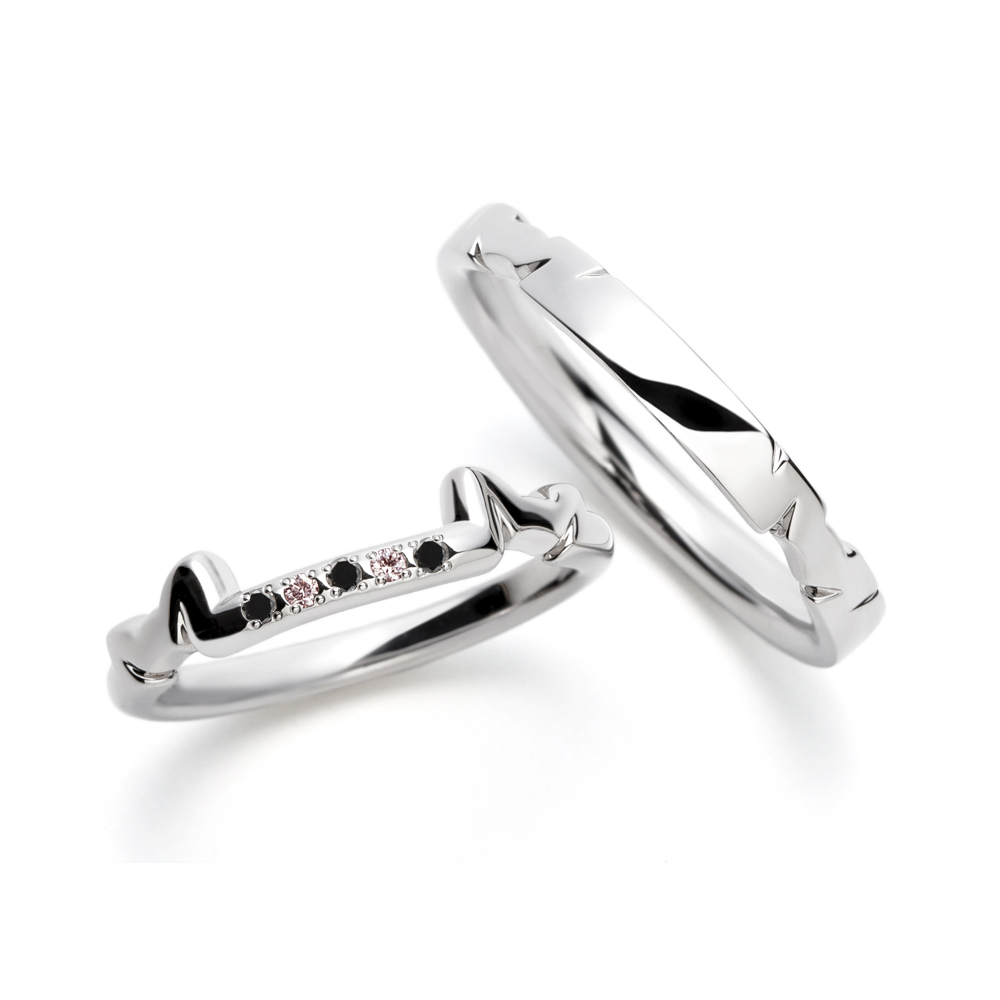 - N.E.K.O.と同様に重ねてネコの顔になるデザインです。ポイントは結婚指輪が上、婚約指輪を下に重ねて着ける事です。N.E.K.O.2 はネコの顔が2ヶ所に現れます。N.E.K.O.と共通してシンプルかつ上質な印象はそのままに、少しだけ華やかさとデザイン性を高めた唯一無二のネコデザインです。