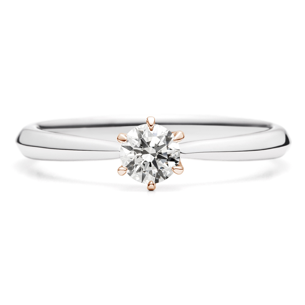 - センターダイヤモンドは6本爪です。中央に向かい腕が絞れているのでセンターダイヤモンドの存在感が程よく強調されています。
