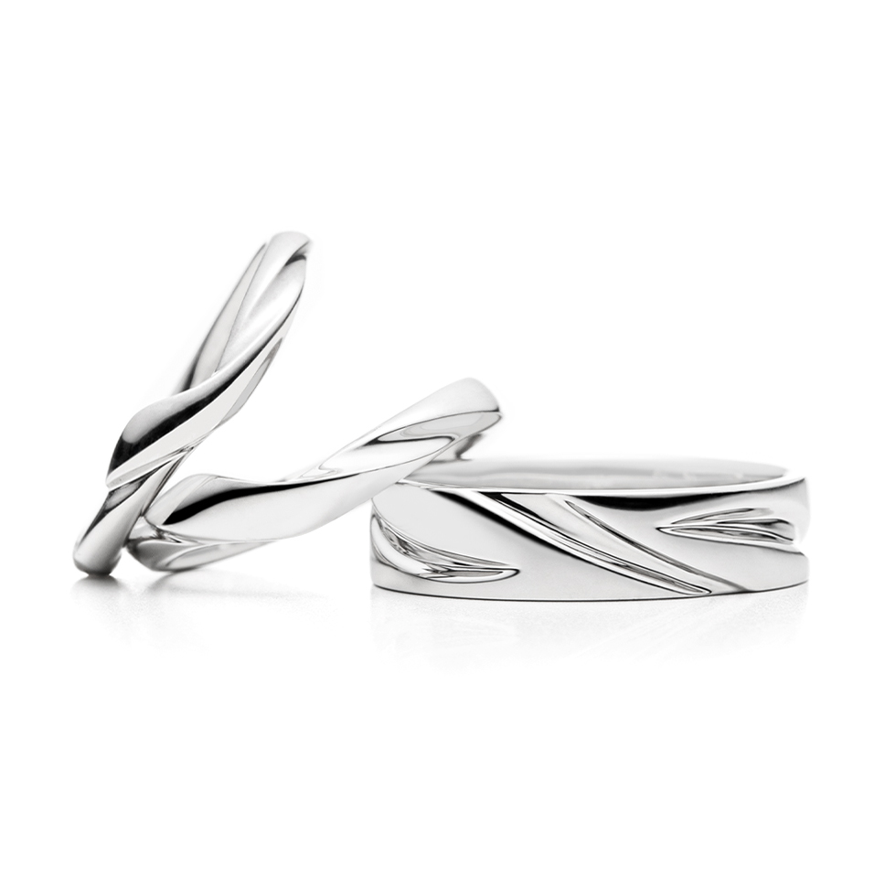 幅違いで個性的なウェーブラインが美しいデザインです。まきこみながら重なるウェーブラインが波打つ大海原を彷彿させます。一番幅のあるタイプはウェーブラインを平打ちの指輪に彫り込み、大海原のように雄大さがあります。