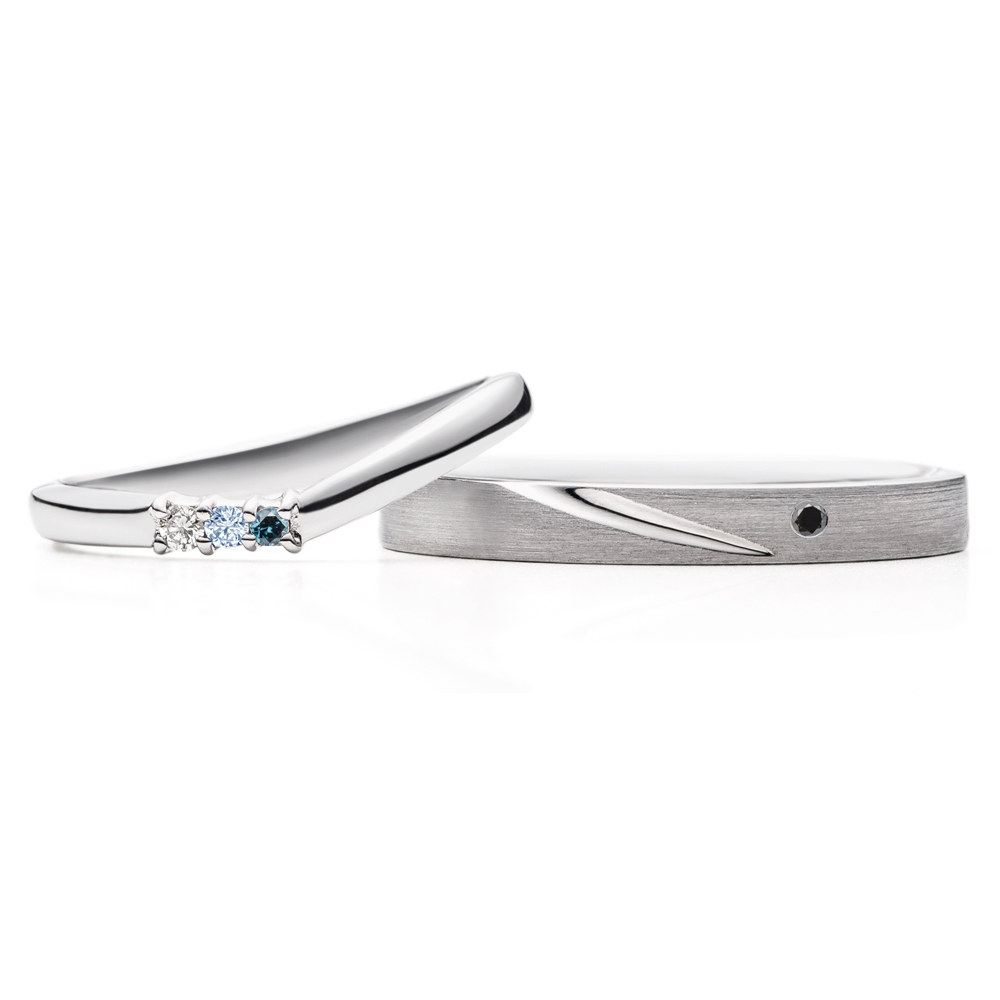 デザインが良かったためAFFLUXに決めました。ダイヤモンドのひとつをアイスブルーダイヤモンドに変更して、2人だけの指輪を考えることもでき、うれしかったです。