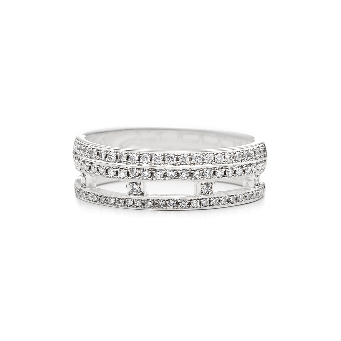 幅広リングに空間を持たせ、重厚感と視覚的軽さを