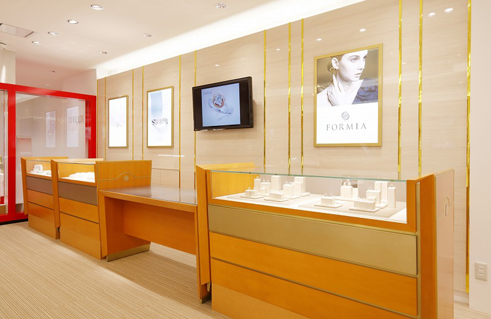 ブライダルジュエリーだけでなく、オメガやカルティエ、ブルガリなどの有名時計ブランドの正規取扱店でもあります。高級感溢れる店内には、世界中の一流ブランドの品々が数多く取り揃えられております。