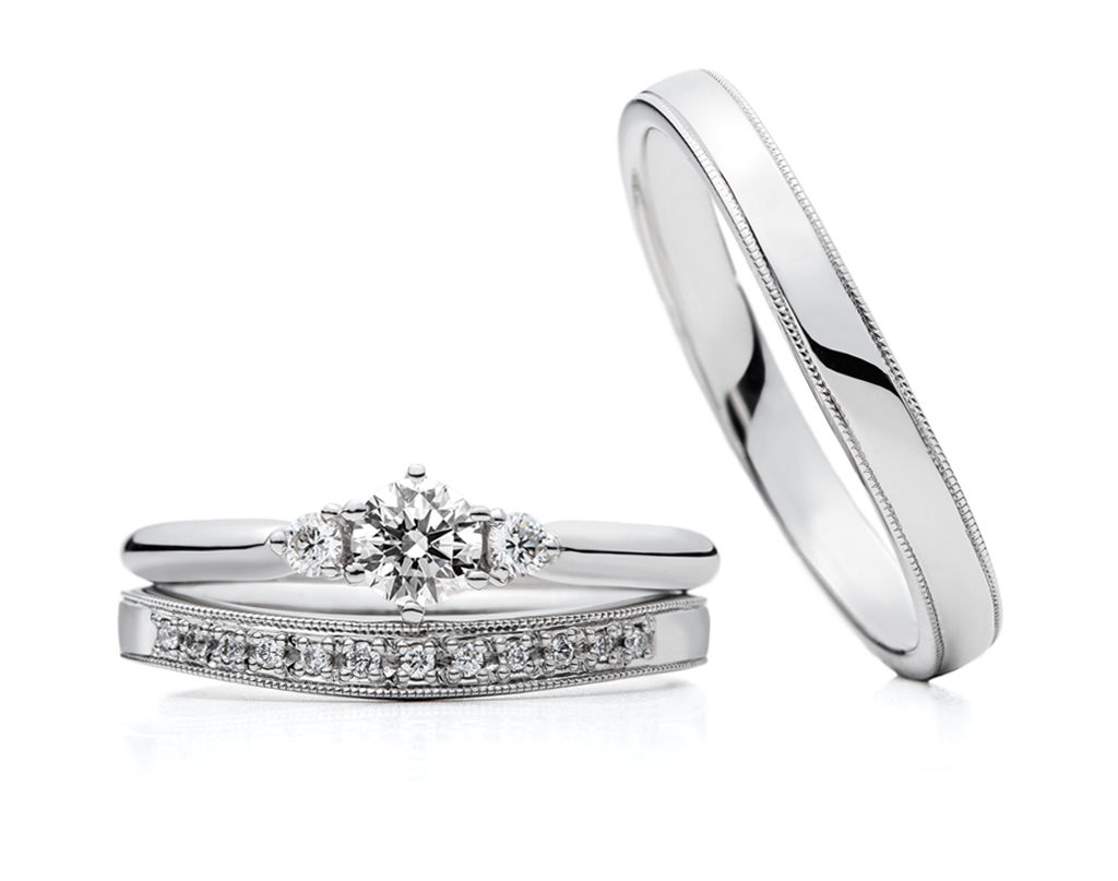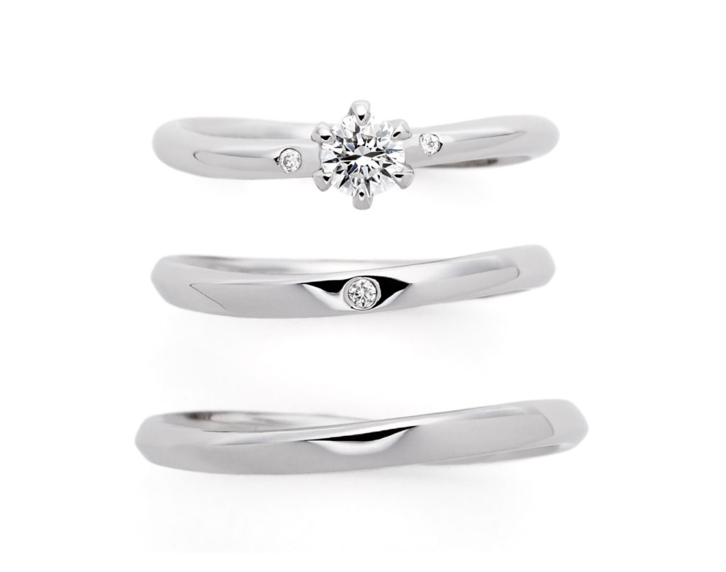 ふたりが出会い幸せに包まれる時の心の高揚、舞い上がる気持ちをリングで表現しており、リング全体の柔らかなウェーブは幸せな気持ちが舞うイメージとなっております。