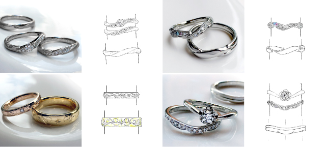 「とても満足です!一面づかいではなく、様々な用途で使えるように、ダイヤモンド1石のところや、ウェーブに見える部分や、模様を取り入れました。
