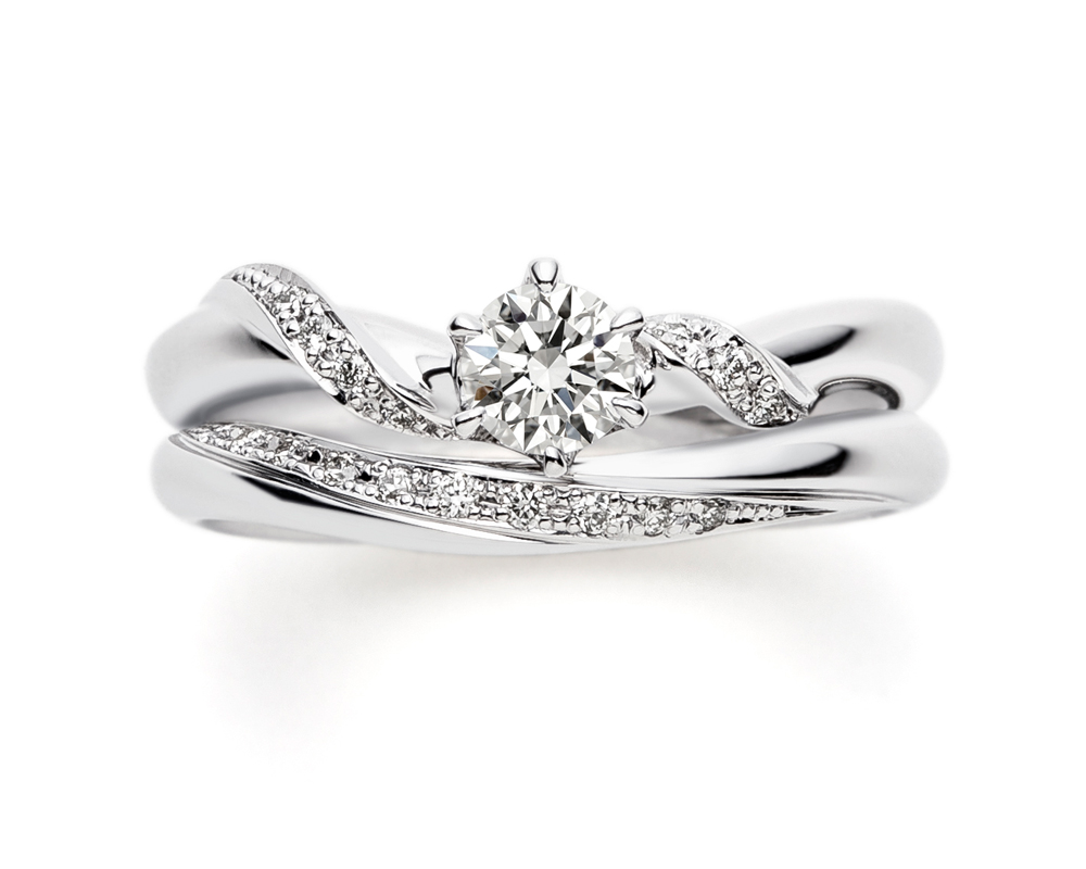 川の流れをイメージし、上側側面まで細やかなダイヤモンドが流れるシンプルなデザインとなっております。