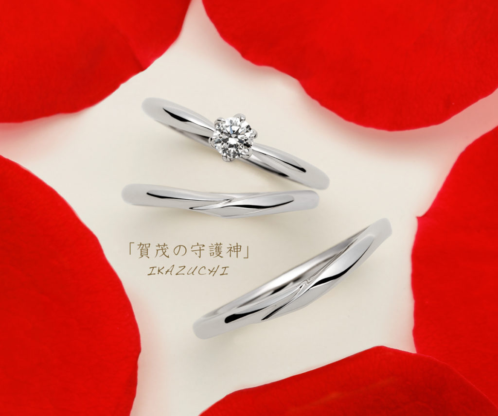 世界文化遺産の上賀茂神社のご神紋「二葉葵」が指輪の内側に刻印されているご祭神の雷神様をイメージして生まれたデザインです。