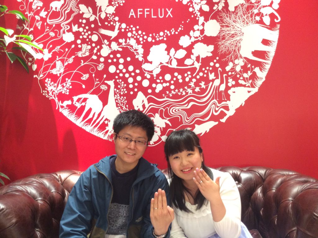 2人が付き合って初めてのデートで行った上賀茂神社の指輪があったのでAFFLUXさんにしようと思いました。