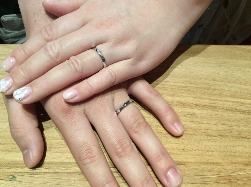 女性様はダイヤモンドを無しにされ、男性様とよりペア感をアップされました♪