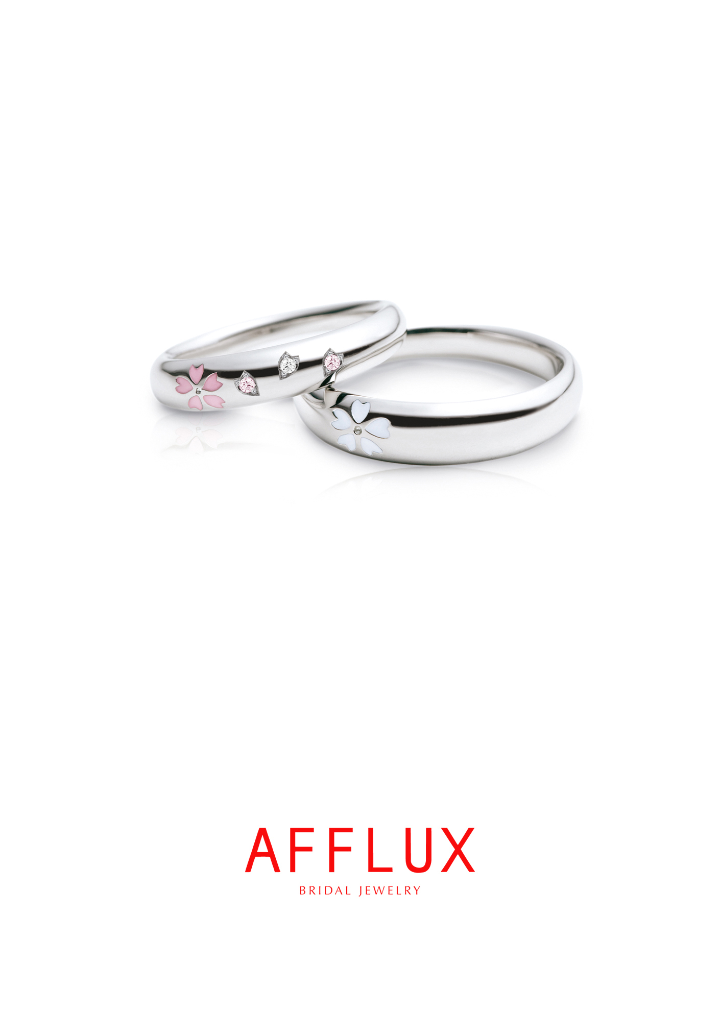 女性様は桜の花びら留めでピンクダイヤを2石、ホワイトダイヤを1石追加されました☆