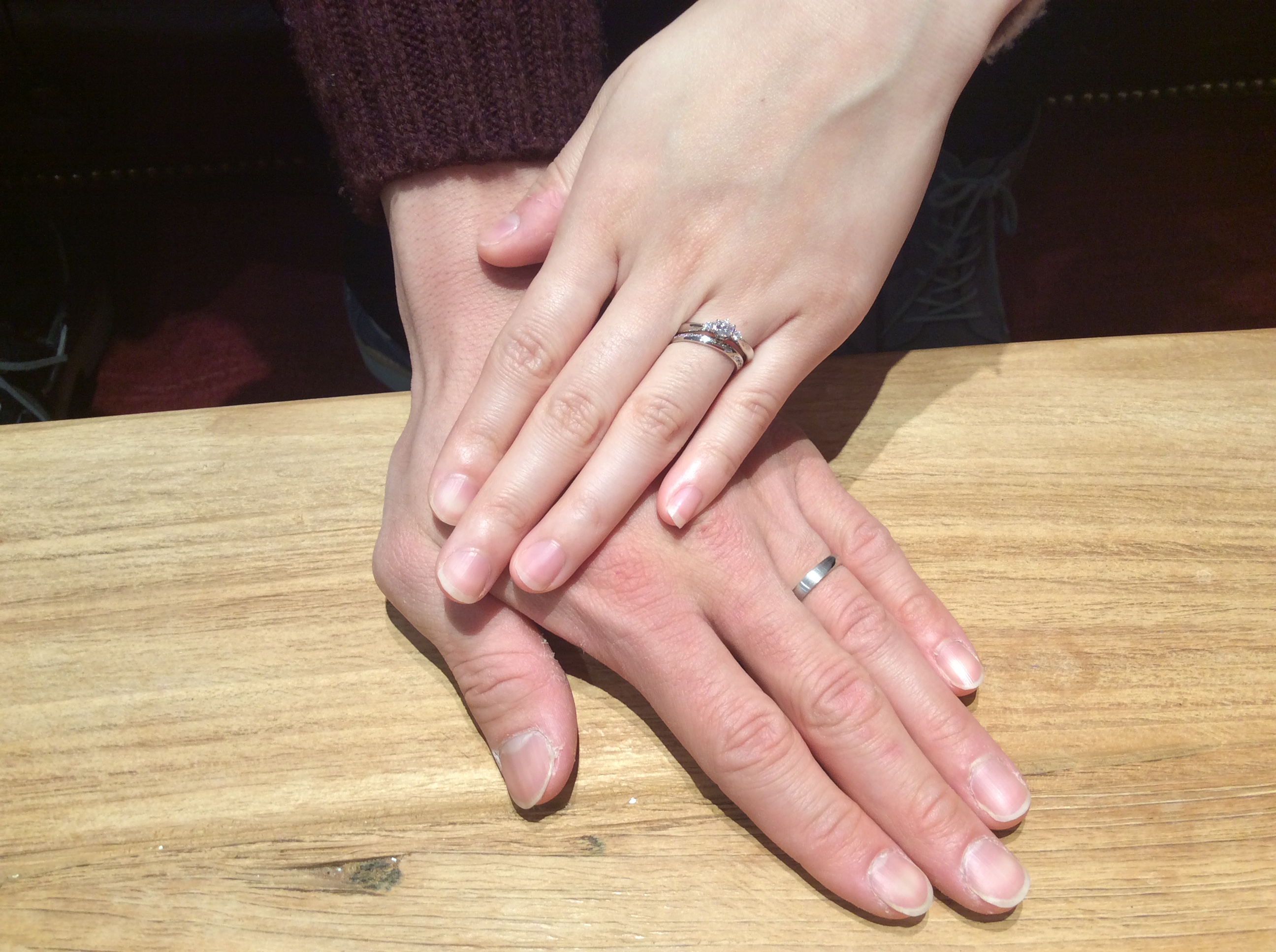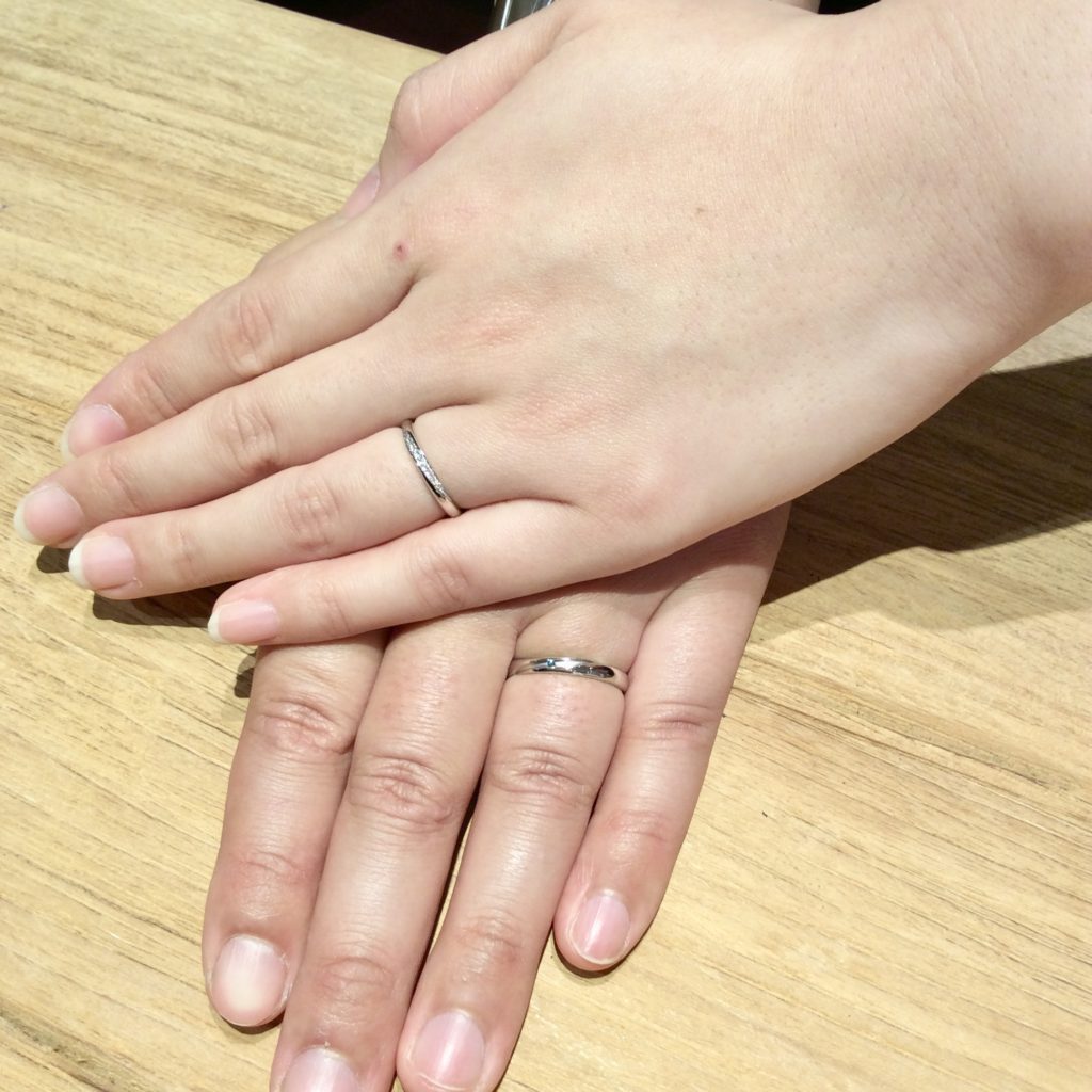 嬉しいですねぇ♪ゆびわ選びされている時にせっかくお越し頂いたので、Aya以外も着けて頂いたのですが、おふたりはやはりAyaを選ばれました。