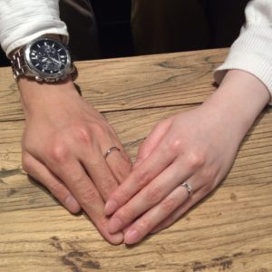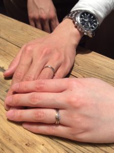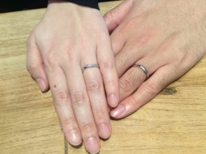 おふたりとは初めてのご来店時・原型の確認・仕上がった指輪のお納めの3回、お目にかかりましたがいつも本当にお互いの事を考えながら仲良く楽しくお話されていて、私も一緒にお話させて頂く事が本当に楽しかったです♪