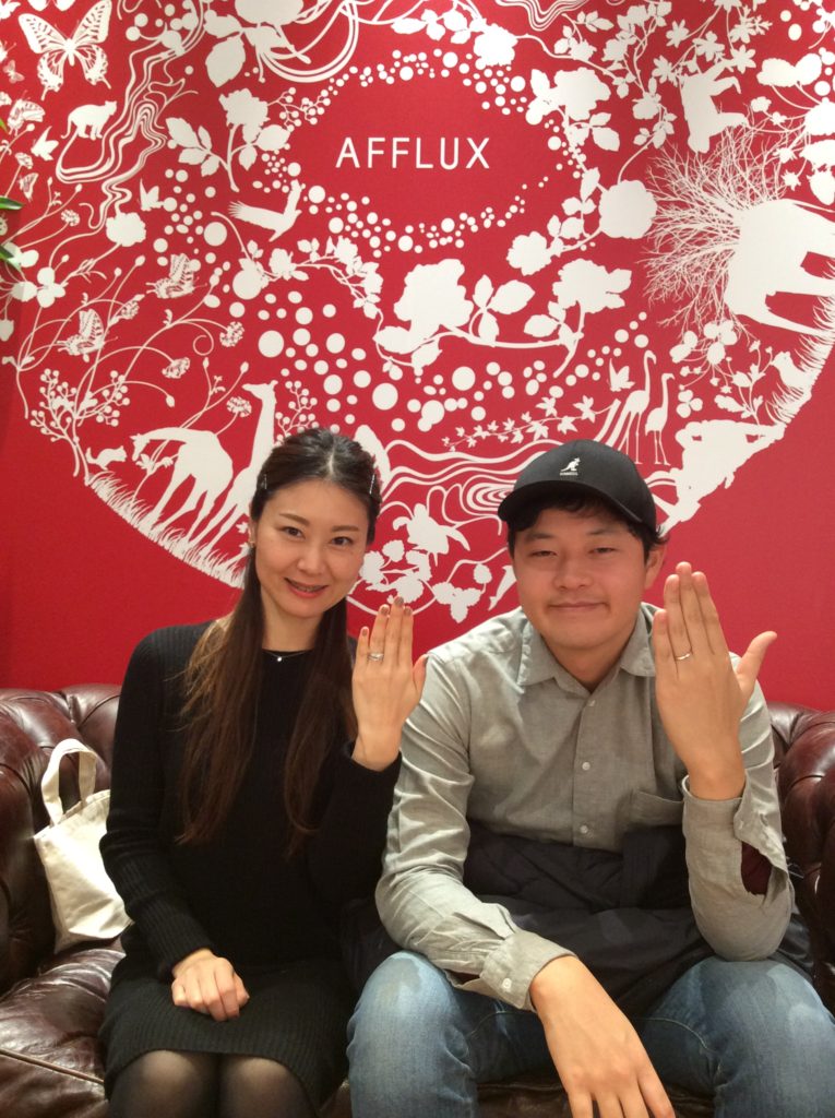素敵なご結婚指輪を今後もAFFLUXの永久保証を通してお守りさせて頂きますので、今後ともどうぞ宜しくお願い致します。