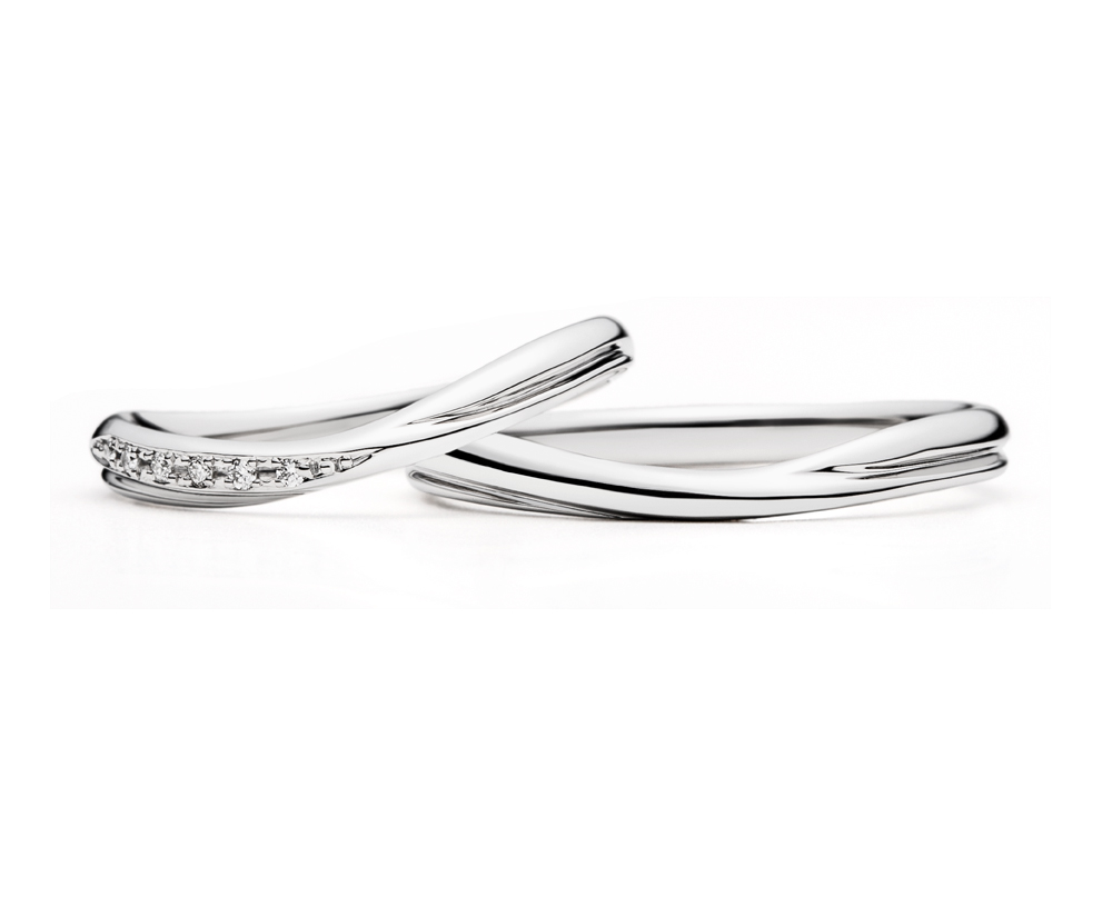お手元をすっきりと魅せる緩やかなUラインはデザイン性だけではなく、着け心地も良いご結婚指輪です。