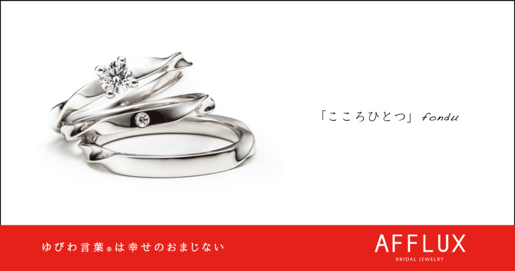 〇指輪を選ぶのに色々梅田を探し回って最後にAFFLUXさんを見つけました。沢山種類が有る中で、「愛しきひと」の指輪を旦那さんが見つけてこれいいねと選んでくれました。私の中でもどんぴしゃでした。担当してくれた谷口さんはとても親身で安心しました。本当にありがとうございます。