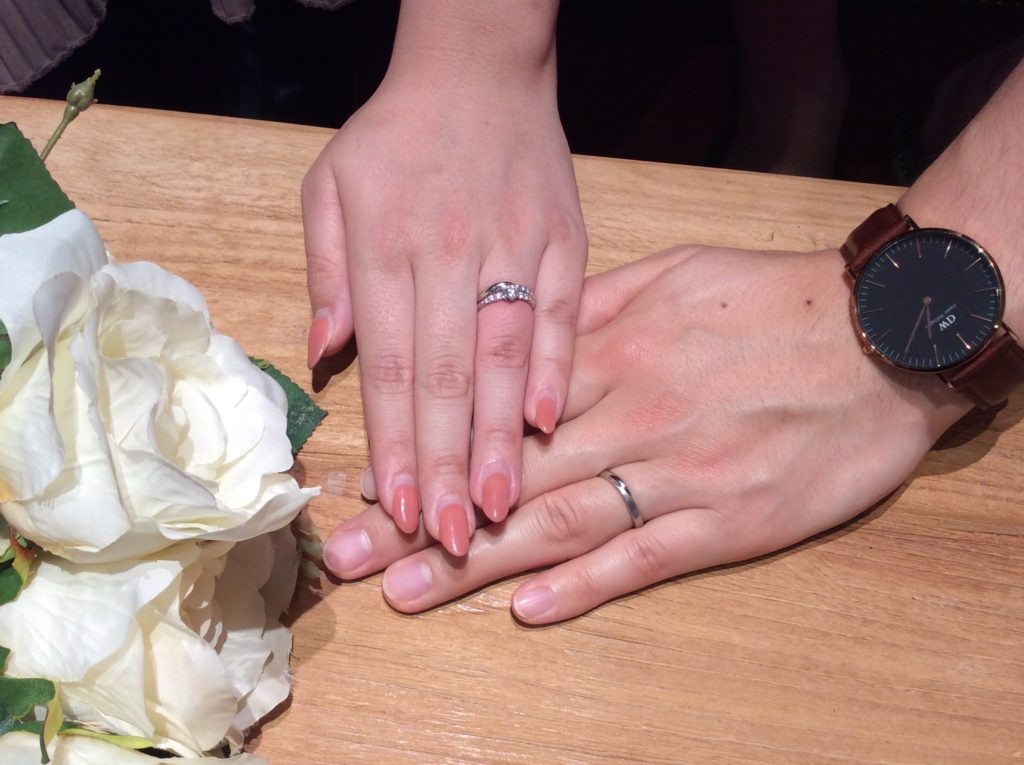 おふたりはご婚約指輪にma cherieを選んで下さり、ご入籍日が決定した後、ご結婚指輪も当店へ見にご来店下さりました😄