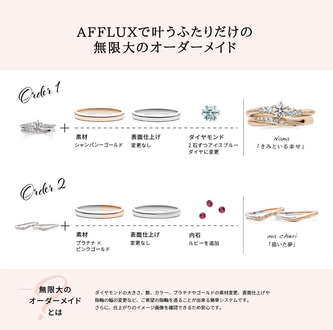 【婚約指輪・結婚指輪】AFFLUXで叶うふたりだけの無限大のオーダーメイド