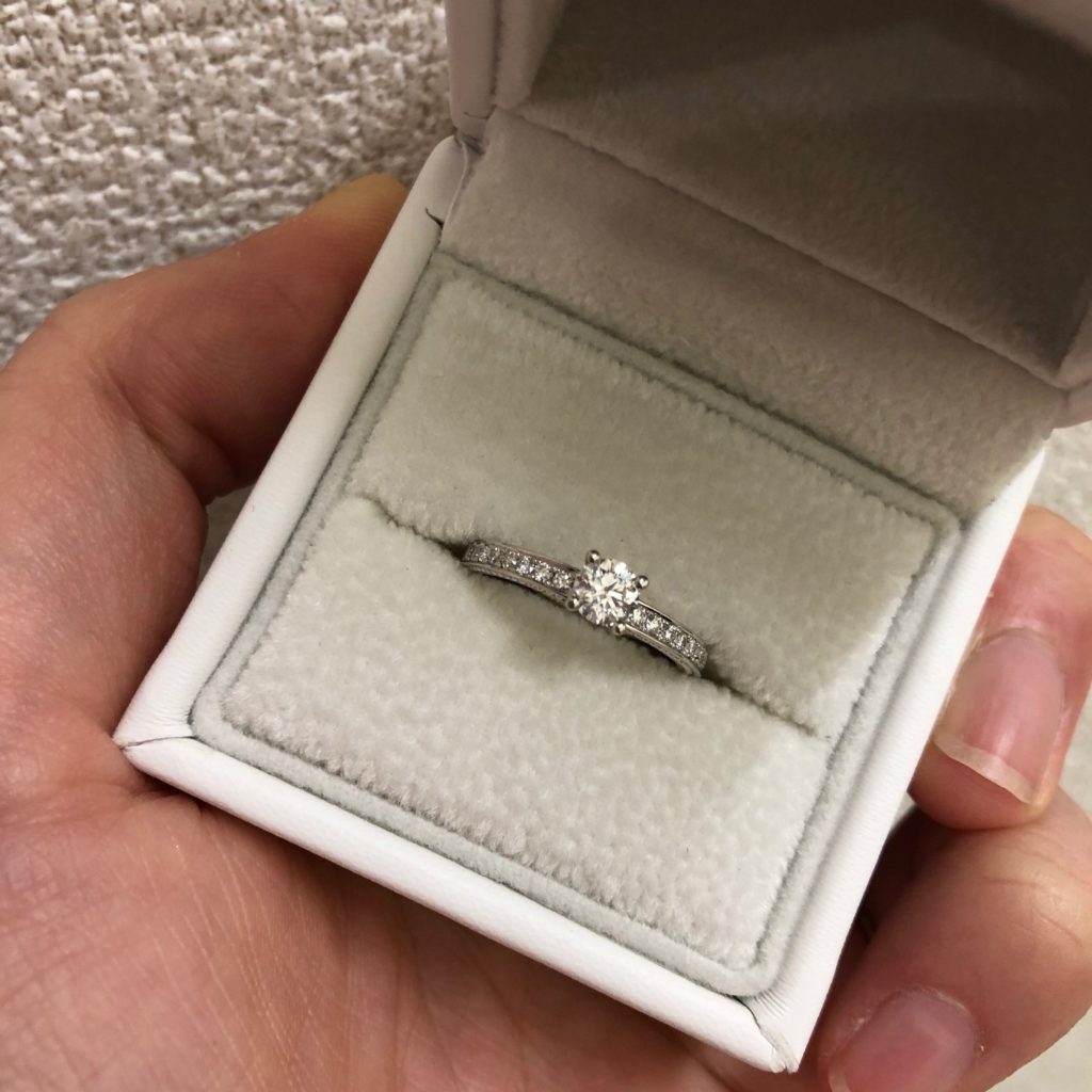 ご婚約指輪は正面から見るとダイヤモンドの美しい輝きで眩しい!!
