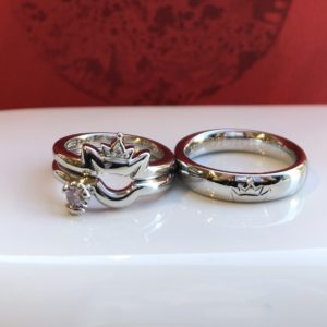 大人気猫モチーフ🐈⬛デザイン。今回は婚約指輪と結婚指輪(レディース)のみの出展です。(画像/上段と中段のみ)