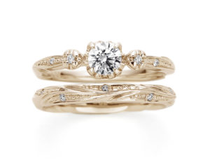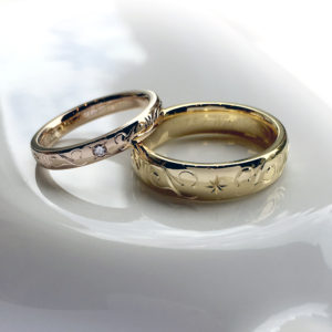 どうですか、シンプルですがとても女性らしく可愛いリングと、男性らしくしっかりとしたリングにそれぞれ仕上がっております。