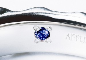 ①リングの内側に幸福を運ぶ「サファイア」をプレゼント。