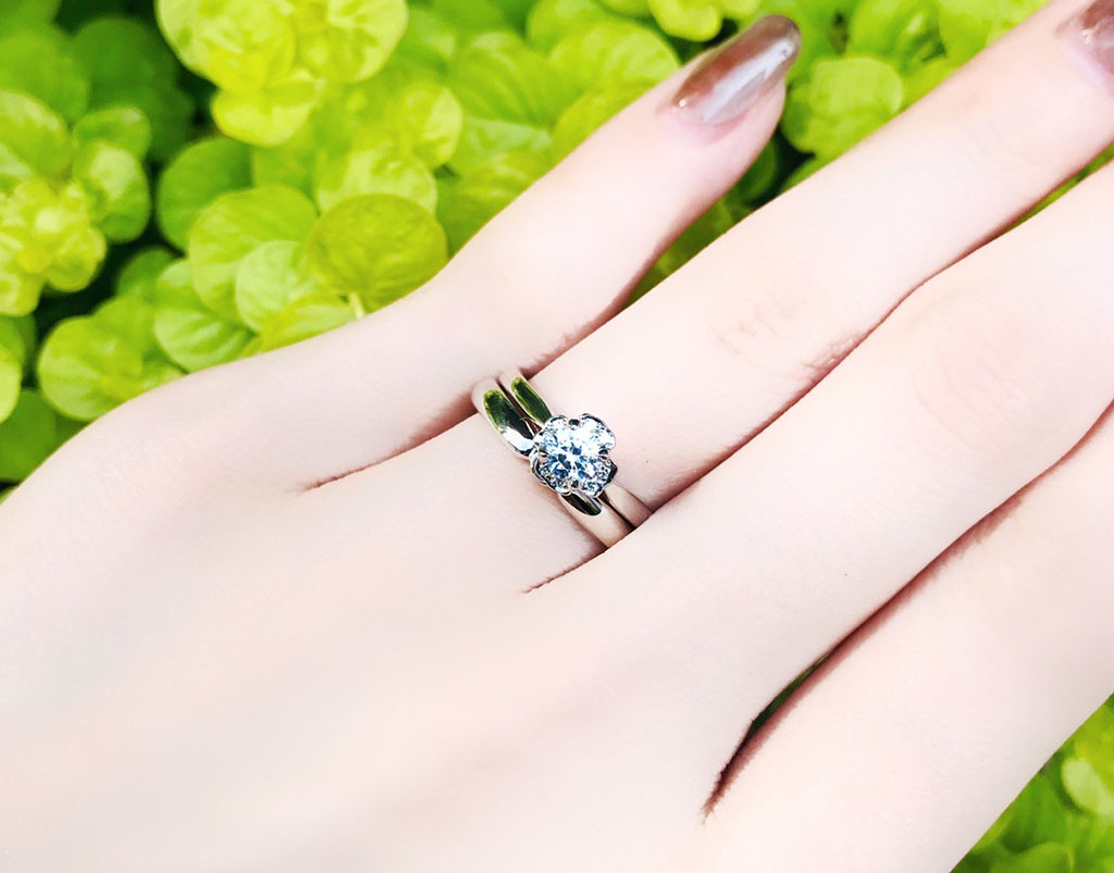 シンプルなマリッジリングと華やかなエンゲージリングの組み合わせは女子の憧れですよねぇ!