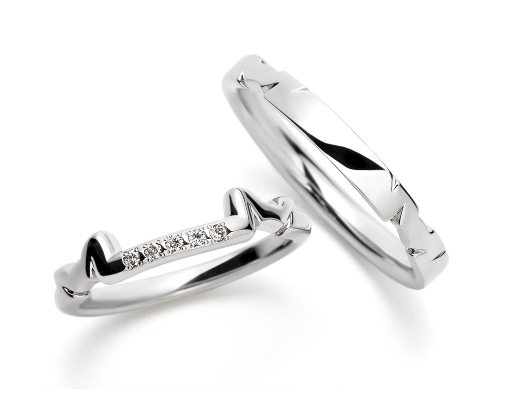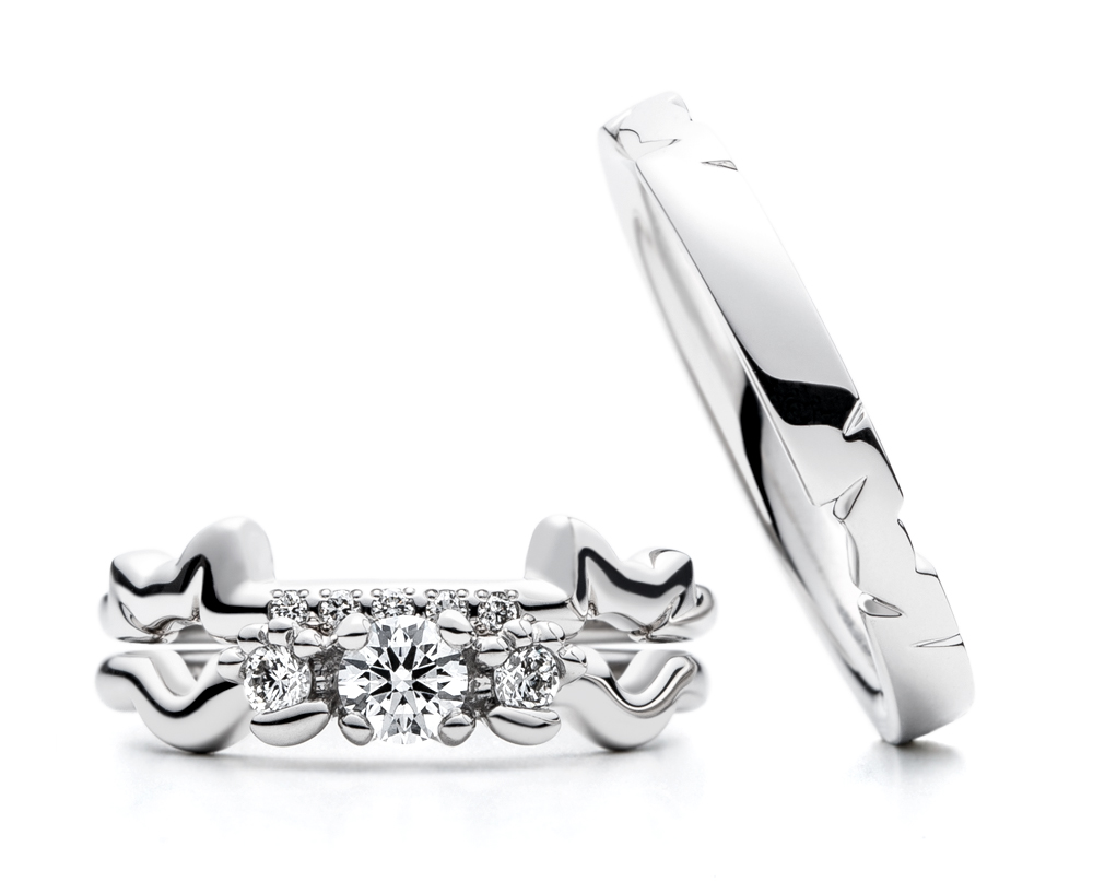 大人気猫モチーフデザイン。今回は婚約指輪と結婚指輪(レディース)のみの出展です。