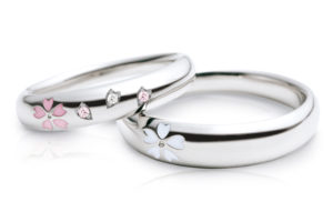 幅がある程度あるデザインには桜の花びらを彫って、その中にダイヤモンドを留めたり、花びらの彫模様を数か所に追加することができるんです。